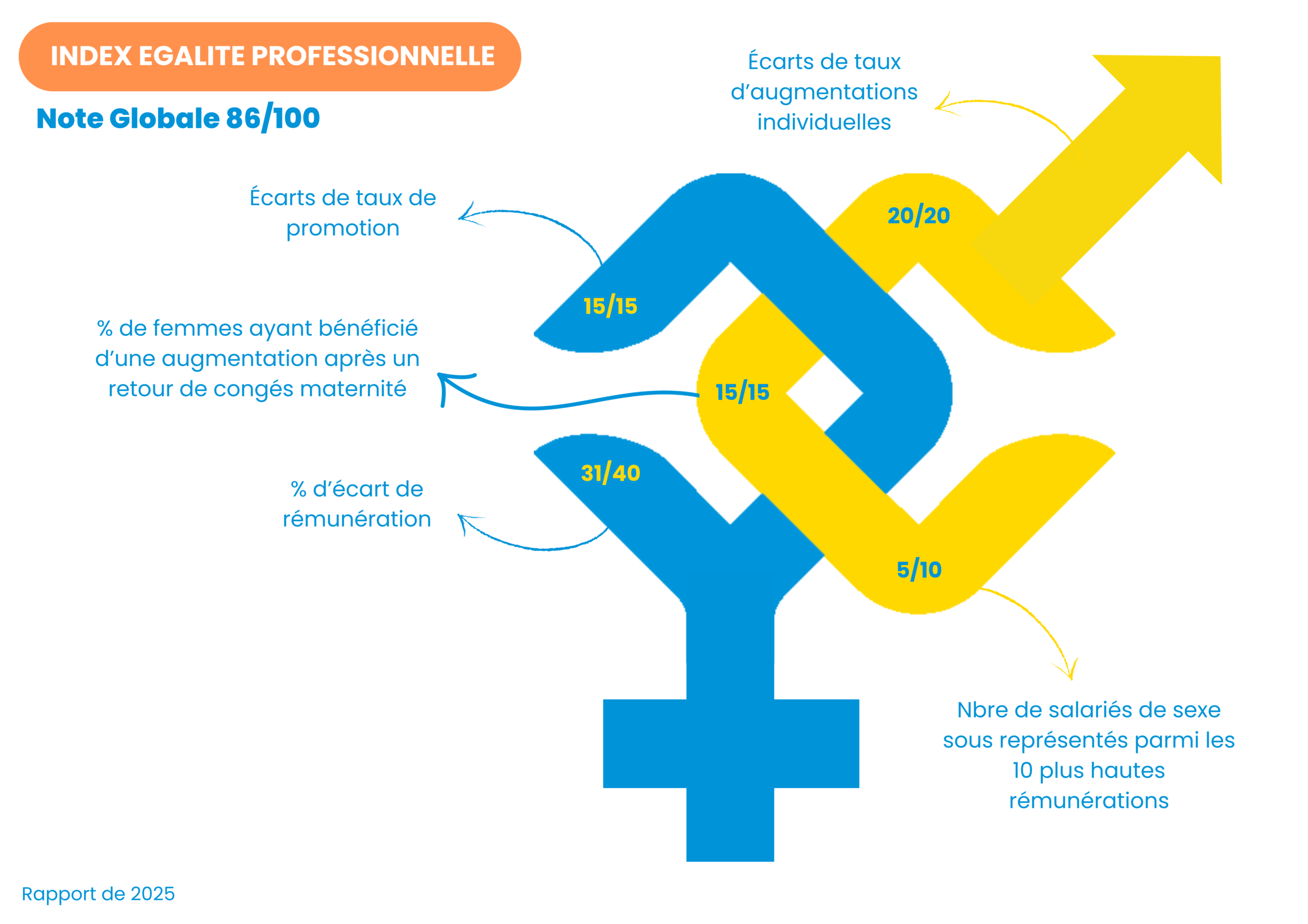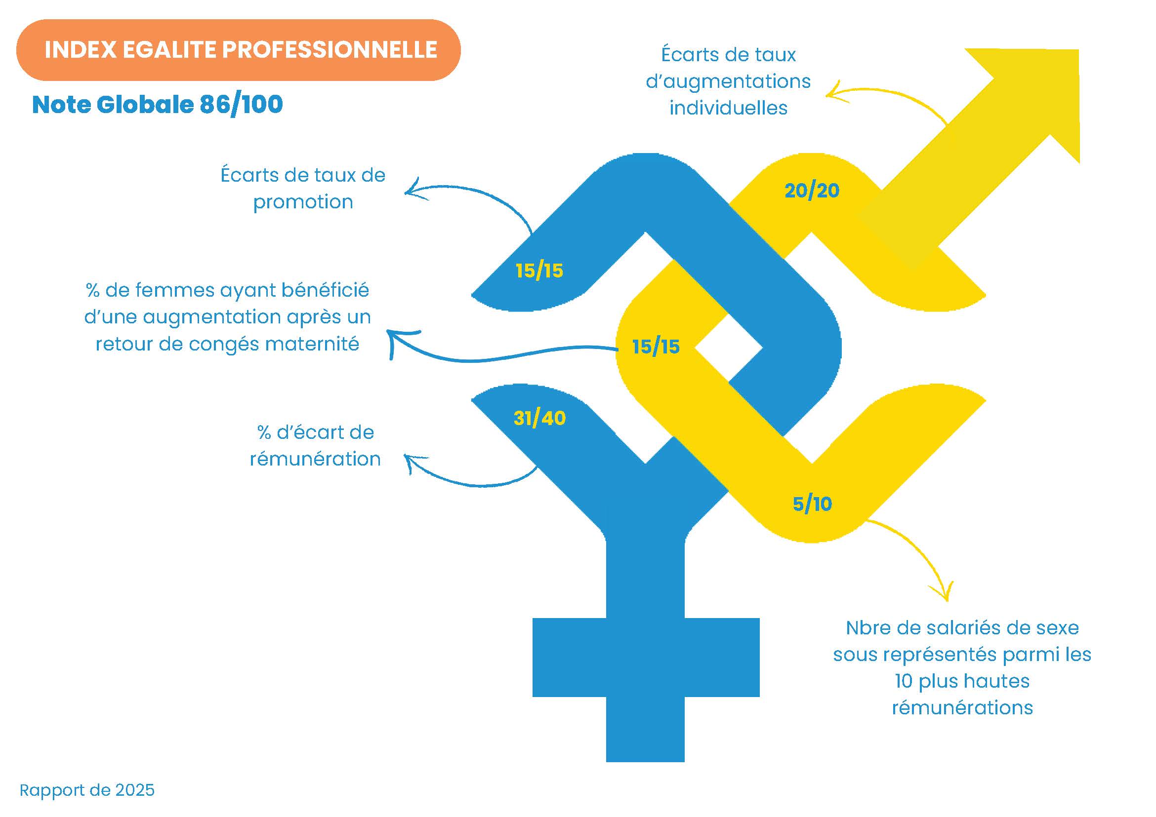 Cet index, calculé selon plusieurs indicateurs définis par la réglementation, permet de mesurer les écarts en matière de rémunération, d’augmentations individuelles, de promotions, ainsi que la place des femmes parmi les plus hautes rémunérations de l’entreprise.